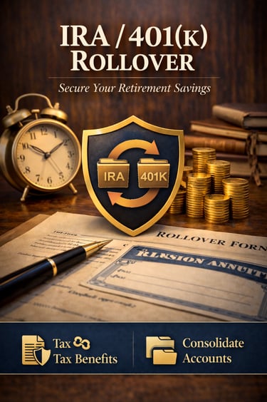 Take control of your retirement savings with a seamless IRA & 401(k) rollover designed to protect your wealth and maximize long-term growth. Our expert-guided process simplifies every step so you can move your money with confidence, clarity, and zero stress.